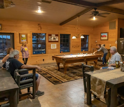 Guests can enjoy the resort pool, indoor games, and comfortable spaces to unwind after a day on the lake. The complex also features a full kitchen and event space, perfect for group gatherings, celebrations, and special occasions.